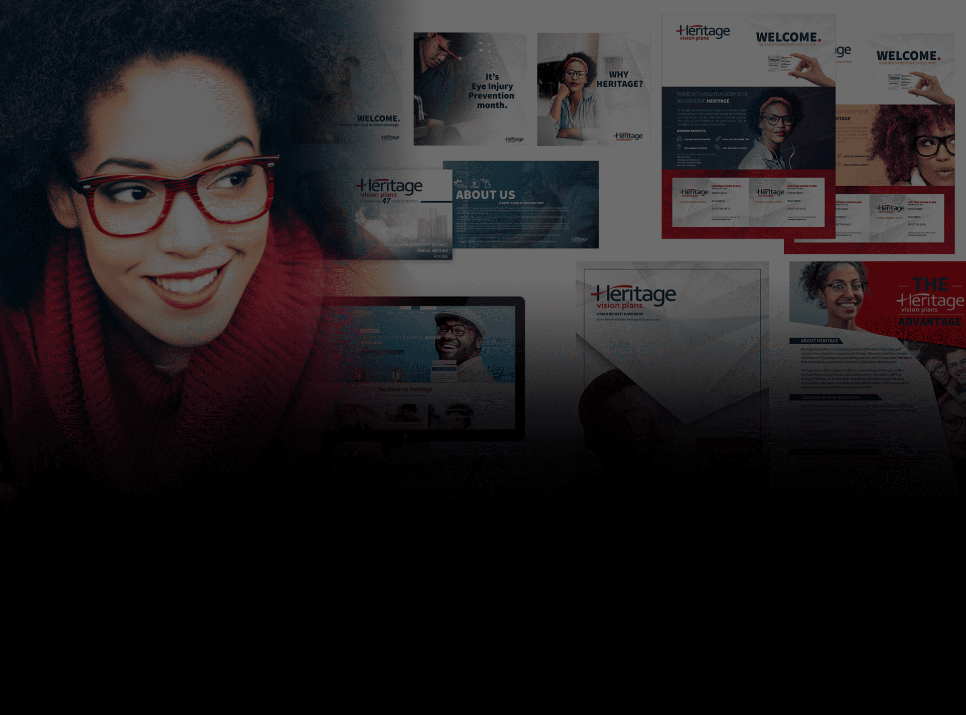 Our collaboration with Heritage Vision Plans, a leading eye vision insurance company, involved a comprehensive range of graphic design services, including a brand refresh, and a joint venture with Build Create Studios to redesign their website.